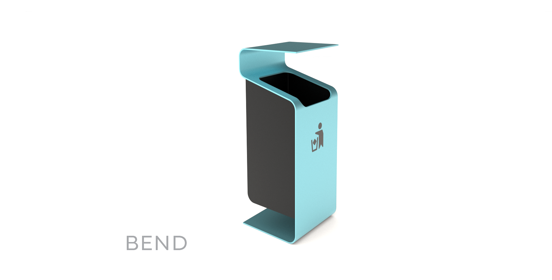 Odpadkový koš BEND je elegantním prvkem k doplnění městského mobiliíře. Výsuvný modul se uvolňuje zezadu. Ocelový plát ohnutý do elegantního tvaru shora představuje stříšku a vespod tvoří pluchu k ukotvení koše.